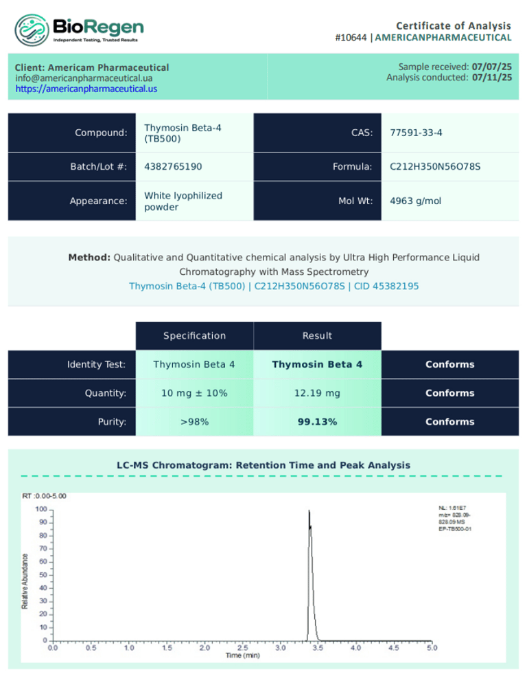 Незалежний лабораторний аналіз (BioRegen):