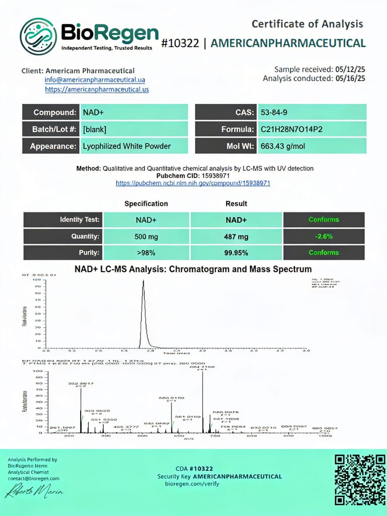 NAD+ (нікотинамідаденіндинуклеотид) — це природний кофермент, що присутній у кожній клітині організму і відіграє ключову роль у виробленні енергії, відновленні ДНК та підтримці нормального метаболізму.